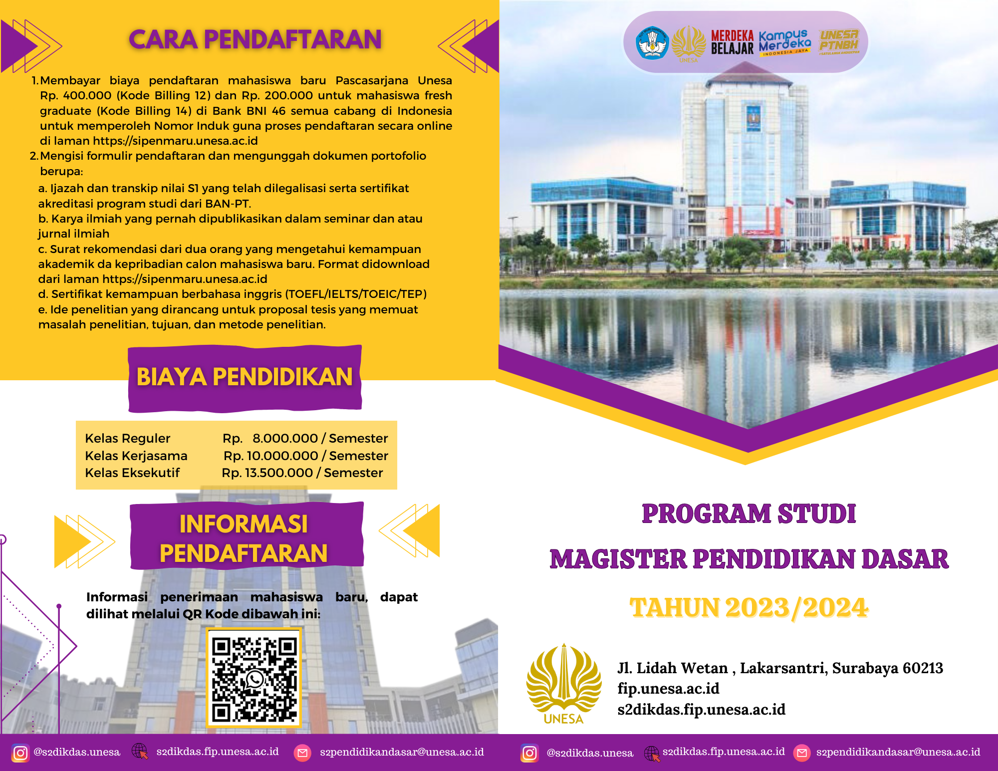 Informasi penerimaan mahasiswa baru S2 Pendidikan Dasar FIP Unesa dapat dilihat di QR Kode dibawah: